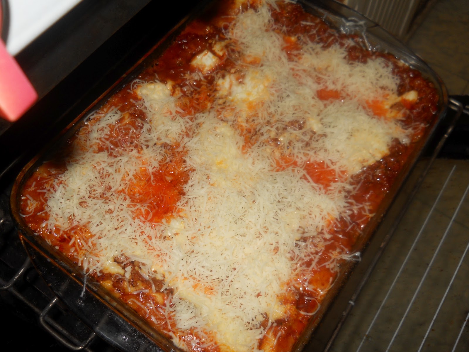 Szépen elosztom, hogy mindenfele jusson és vissza tesszük az akkor még meleg sütőbe, hogy jól ráolvadjon a tetejére, ettől lesz olyan istenien finoman nyúlós a sajt a tetején.
