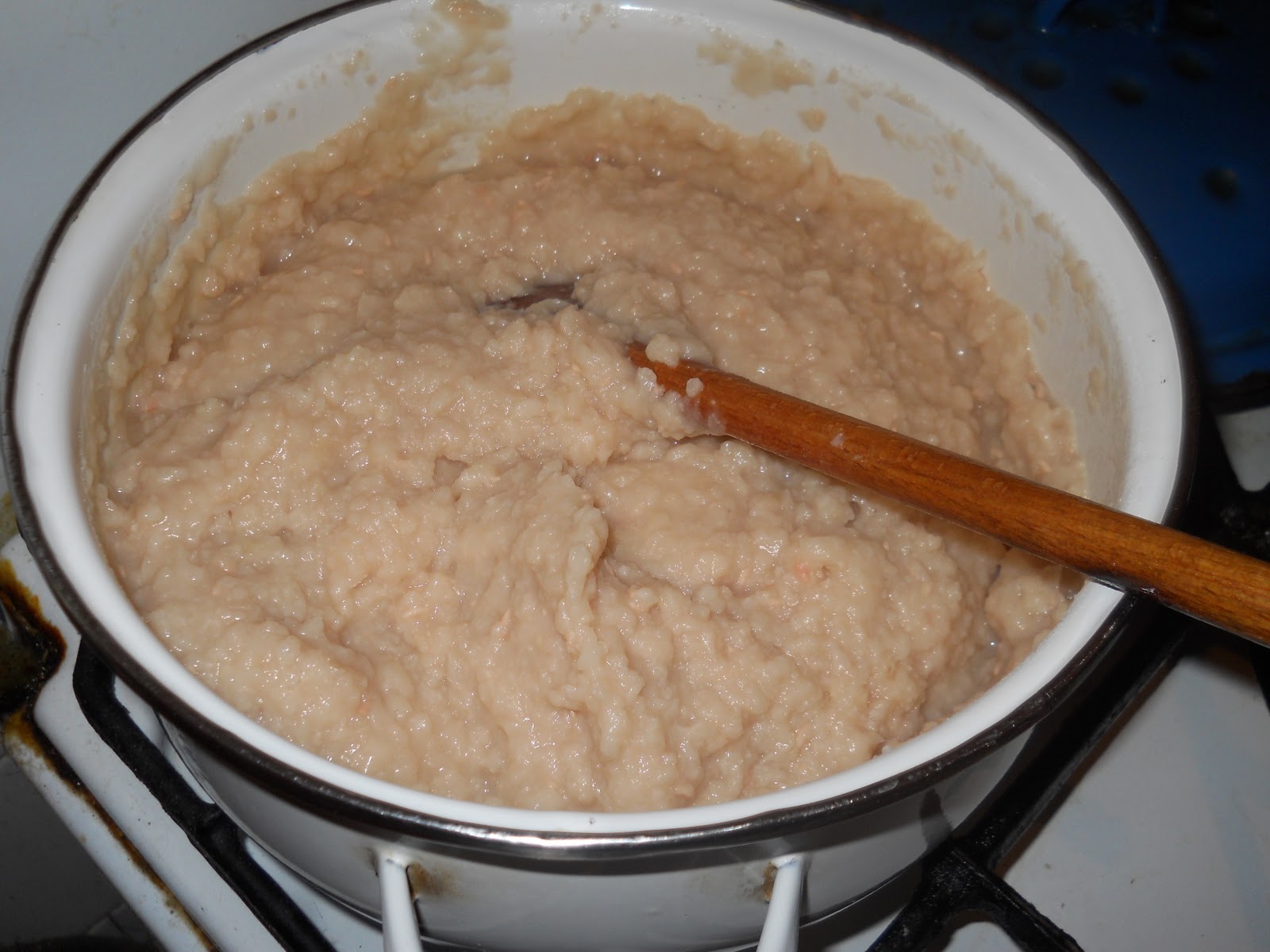 Fogunk egy nagyobb edényt, itt most nekem két tejfölös vederkém volt az egyikbe volt egy nagyon kicsi azt használtam fel kavaró edénynek. Szóval, ebbe teszek egy evőkanál lisztet és jól összekeverem, majd annyi tejet töltök hozzá, míg kb. olyan állaga nem lesz mint a palacsinta tésztának. Ekkor egy kicsit félre tesszük.
