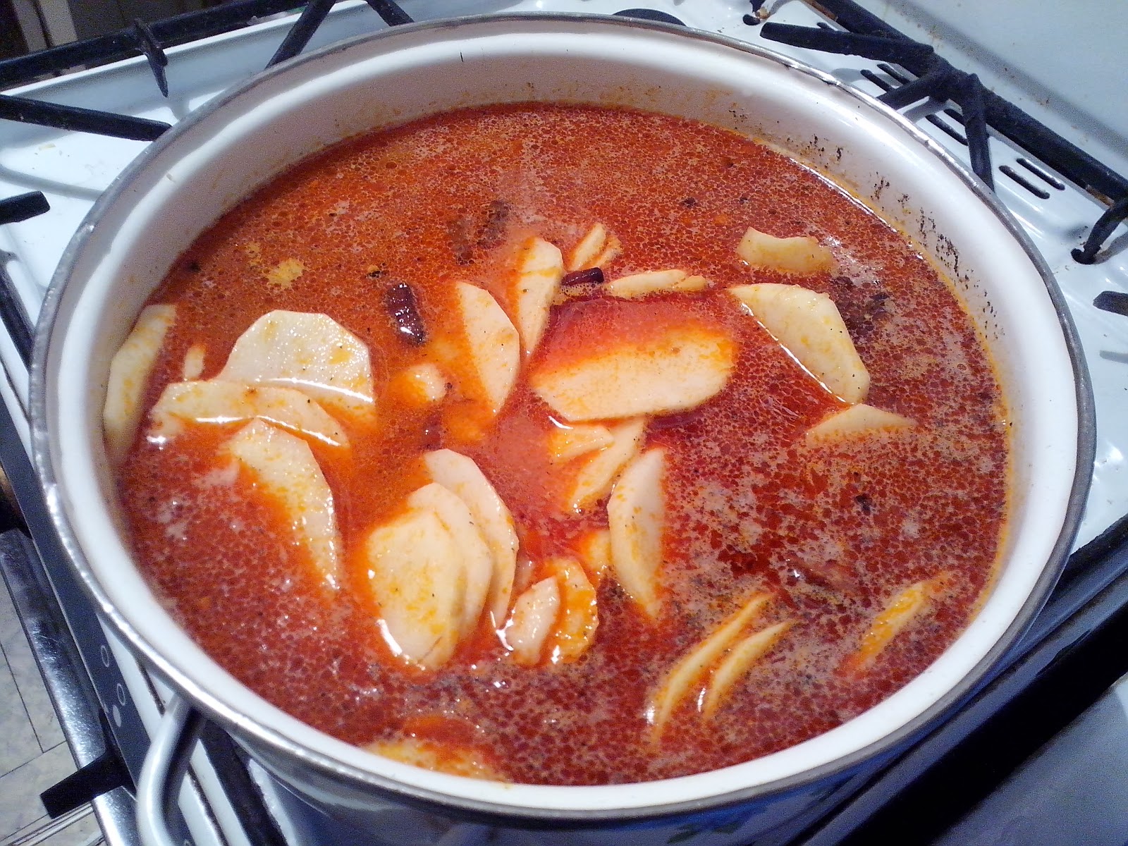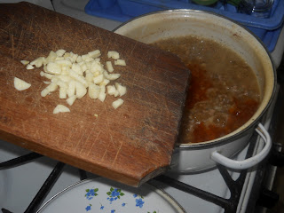 Amikor már elfőtt a víz és a hús is jó, akkor szoktam bele tenni az apróra vágott fokhagymát.
