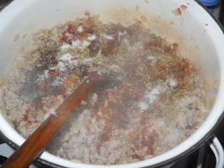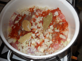 A szószhoz: 500 gr. darált sertés hús, 3-4 közepes fej hagyma, 2 cikk fokhagyma, olaj, só, bors, pirospaprika, oregánó (szurokfű), paradicsompüré (paszta).